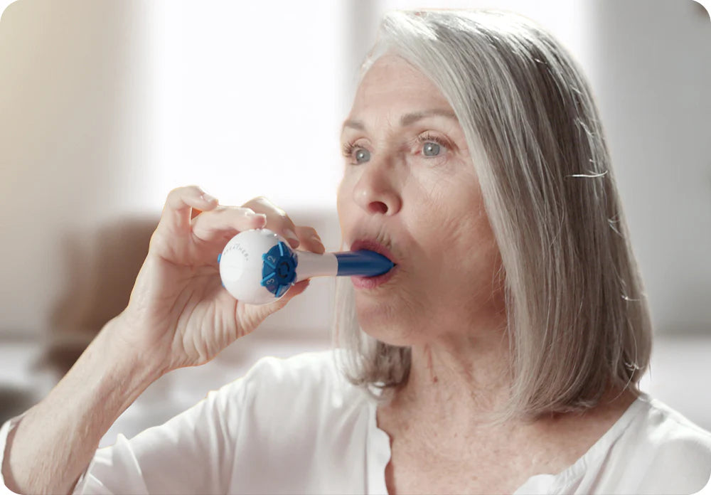 Place the mouthpiece gently between your lips — do not bite or clench.
